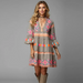The Colorful Boho Bell Sleeve Dress combines vibrant hues with a relaxed, free-spirited design. Its flowing bell sleeves and bold patterns create a carefree yet stylish look, perfect for festivals, casual outings, or sunny days at the beach.