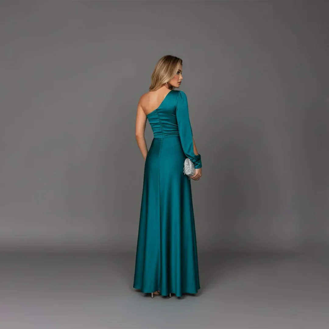 Elevate your wardrobe with this One-Shoulder Satin Evening Dress – a stunning, sophisticated choice that radiates elegance and grace at every special occasion.